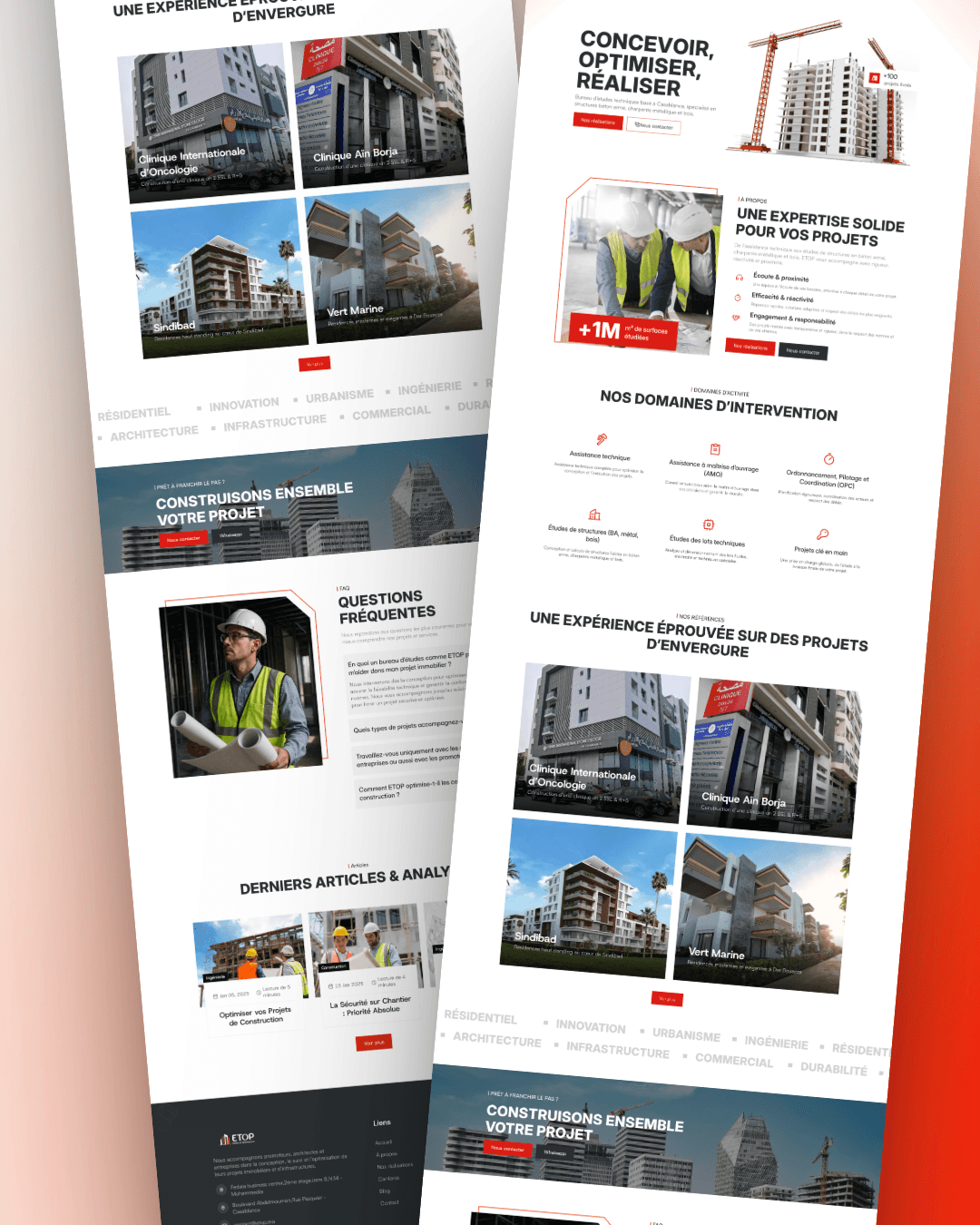 The website organizes ETOP’s diverse services — structural studies, technical-lot studies, project management, turnkey delivery — in a clean, intuitive layout. This makes it easy for architects, developers, or contractors to quickly evaluate their offerings and understand how ETOP can support their project from inception to delivery.